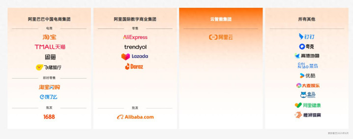 此前,阿里巴巴集团官网显示,其原有的阿里云智能、淘宝天猫、本地生活、菜鸟、国际数字商业、大文娱等六大业务集团被划分为四大业务类别,分别为阿里巴巴中国电商集团、阿里国际数字商业集团、云智能集团以及所有其他。